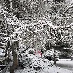Inredningen består av soffa, medan det också finns utsikt över trädgården. I badrummet finns en dusch samt hårtorkar och badlakan.